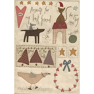 KITATTNCOMPLETE, Block of the month kit including all 12 months, Patterns, Pre-printed background fabric, Applique Woolies, Steam a seam and DMC by Bonnie Sullivan (All through the Night)