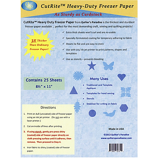 As sturdy as cardstock. Extra thick sheets won’t curl and are reusable. Specially formulated coating for temporary adhering to fabric. Sheets lie flat and are easy to store. Use with any ink jet printer to print patterns, shapes and templates. Use as stencils - prevents bleeding.