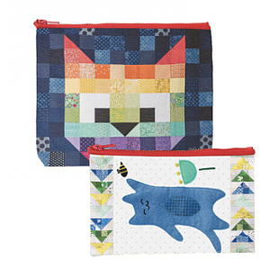 Set of two zip-top pouches: large 9-1/2" x 7" pouch and small 8-1/2" x5" pouch features quilts made from Pamela Jane Morgan’sPurr-fect Patchwork. Durable, waterproof material is 100% recycled from plastic water bottles. Rugged square-toothed zippers and boxed corners on the larger pouch for added stability.