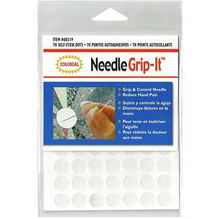 Grip and Pull. Apply flexible self-adhesive dots to needle gripping fingers and thumb for easy needle handling.